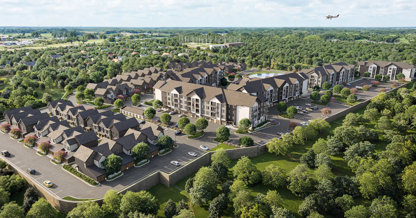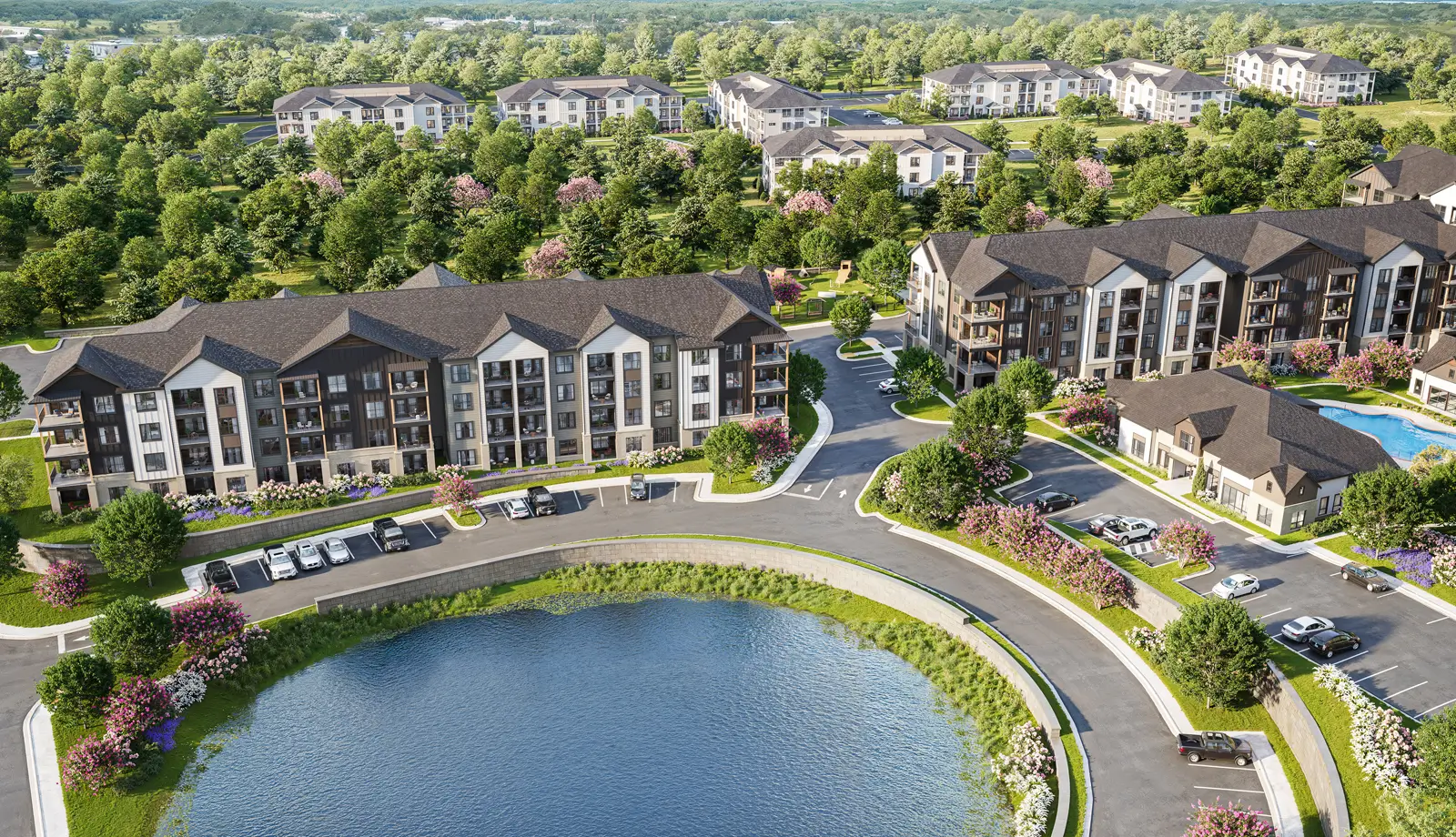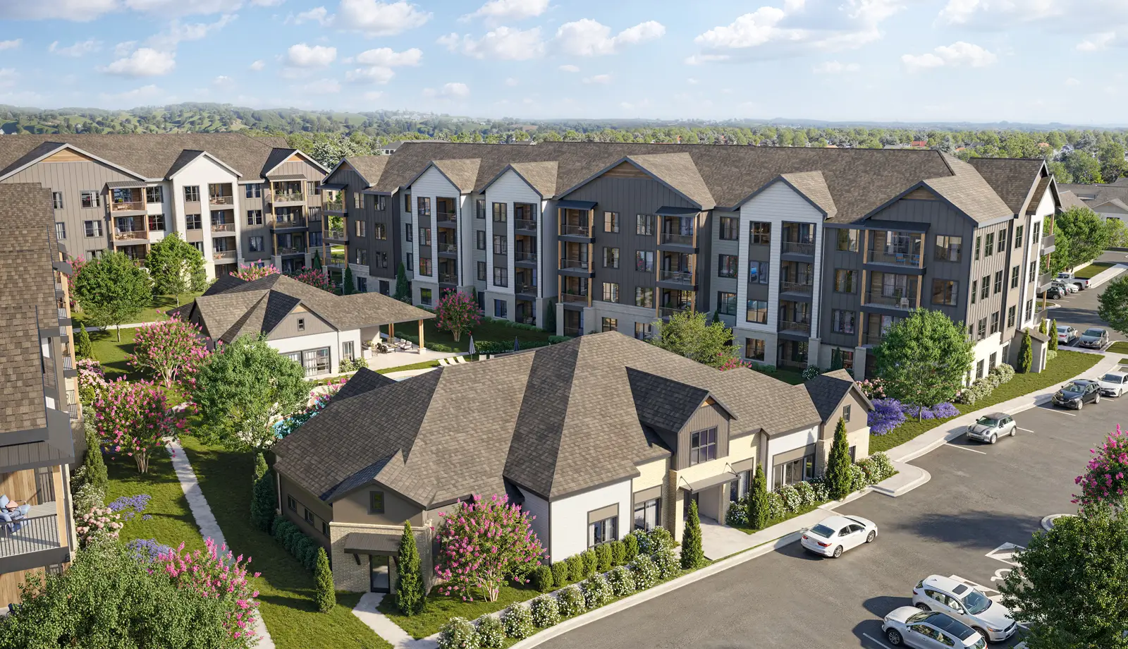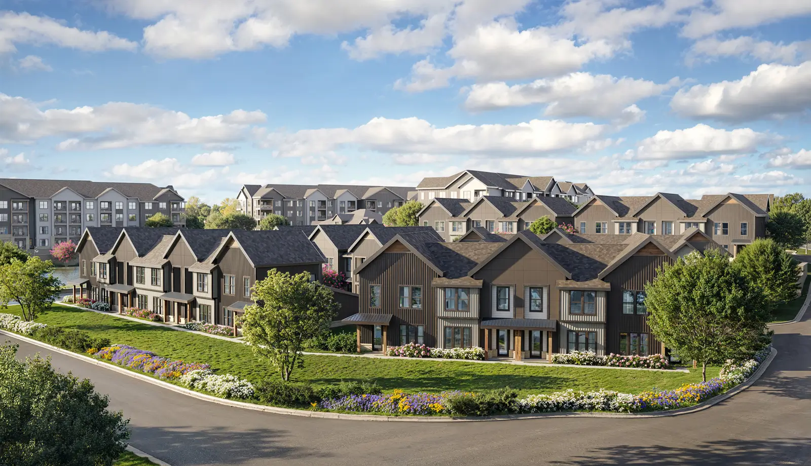 - Mix of luxury apartments and townhome-style rental residences designed for today’s suburban lifestyle